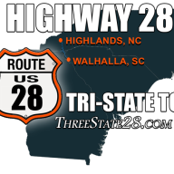 There are three rides on highway 28, the first section riding from South to North is the ThreeState28.com. This motorycle ride is 32 miles from Walhalla SC to Highlands NC, the second part is the Moonshiner 28 from Highlands NC to Franklin NC and the thrird part is TheHellbender28.com is from Franklin NC To Deals Gap NC 22 miles.